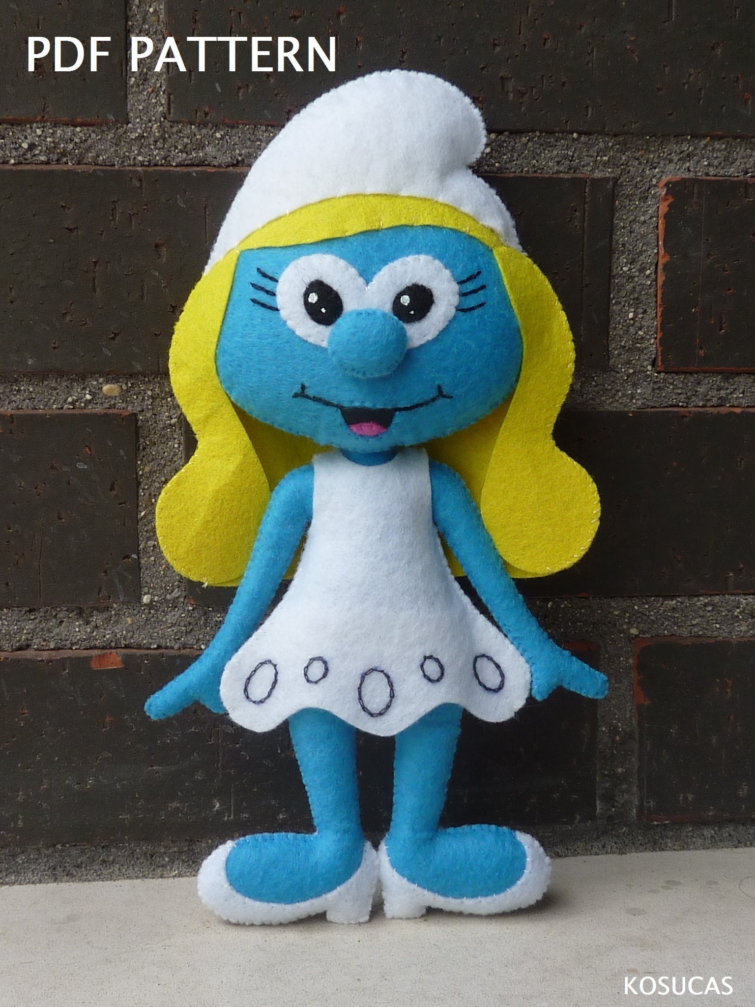 Pdf Pattern To Make A Felt Smurfette Etsy Pdf Pattern Smurfette Felt Toys