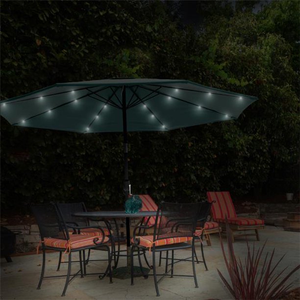 Pure Garden 50 Lg1176 Patio Umbrella Deck Shade With Solar Powered Led Lights Hunter Green 10 Ft Walmart Com